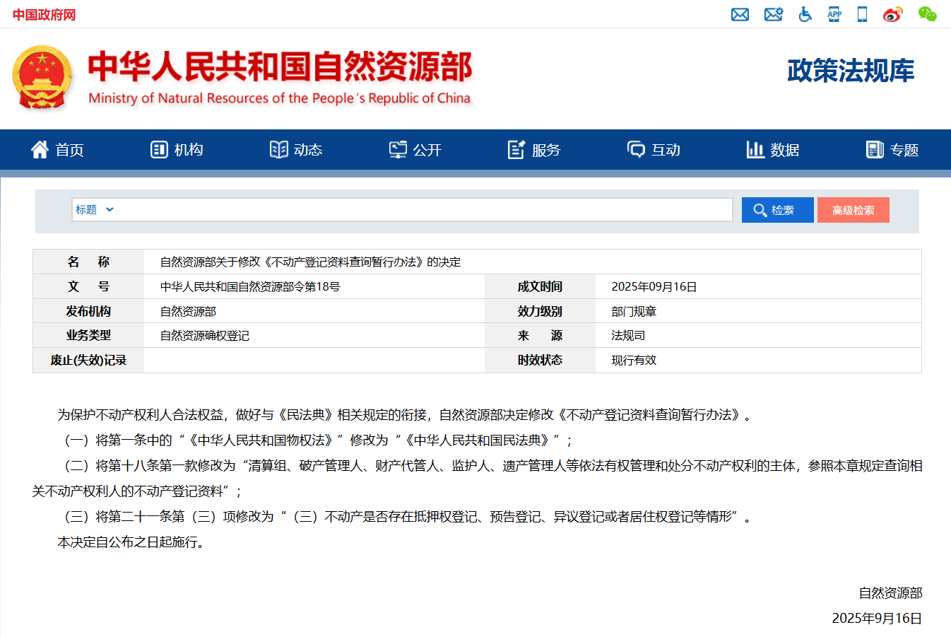 自然資源部關(guān)于修改《不動產(chǎn)登記